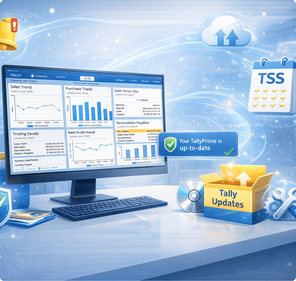 TSS strengthens your TallyPrime environment by ensuring it remains updated, legally compliant, and technically optimized.